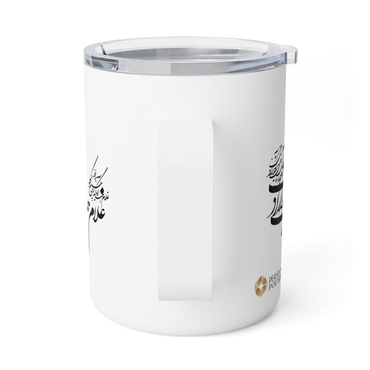 Hafez Verse Insulated Coffee Mug, 10oz “غلام همت آنم که زیر چرخ کبود زهرچه رنگ تعلق پذیرد آزاد است”